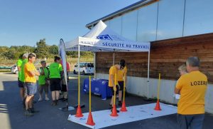 C’est le 18 septembre à la Fage-Saint-Julien que cette année, la Fédération des CUMA organisait leur Journée du machinisme. Pour ce RDV incontournable, le stand de la MSA du Languedoc, animé par Sophie, notre conseillère en prévention, proposait la démonstration d’un masque ventilé afin de continuer à sensibiliser sur les risques liés à la poussière. Deux élues se sont mobilisées sur cette journée. Mme VIGIER, déléguée sur le secteur, a d’ailleurs eu l’opportunité, avec Sophie, de passer les bons messages de prévention en interview sur Radio Margeride. La présence d’Amélie, conseillère en protection sociale, permettait également de répondre à des sollicitations personnalisées.