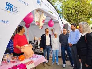 En Ariège, lors de la foire de la Barguillere nos élus ont proposé un stand aux couleurs d’Octobre rose avec un atelier buste animé par des médecins de la Ligue 09.