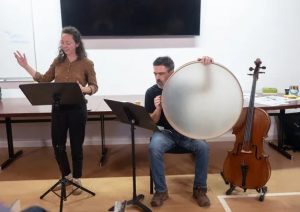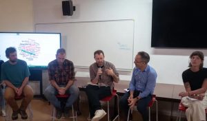 Le point de départ de ce projet, c’était la bande dessinée « Démontagner » créée par Maxim Cain (ancien élu MSA, berger et auteur BD) . En introduction de la table ronde composée de bergers et d’éleveurs, une lecture de la BD accompagnée par la musique créée spécialement pour l’évènement ( la CLAK compagnie) a été proposée aux participants.