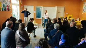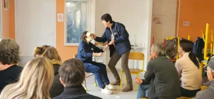​ Pour susciter les échanges sur un sujet – la santé mentale – encore tabou, nous avons notamment choisi de faire appel au théâtre : à partir d’une scénette qui sert d’amorce à la discussion, les spectateurs sont invités à réagir. On explore ainsi les représentations collectives et on déconstruit quelques idées reçues grâce à l’intervention d’une psychologue. Les délégués et salariés ont animé sans interruption le jeu « Parcours mieux-être » proposé par la coordination nationale PMEA tandis que le théâtre-débat organisé à l’intérieur à l’écart du tumulte a permis de rassembler une trentaine de personnes à chacune des deux représentations.